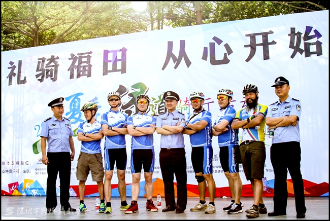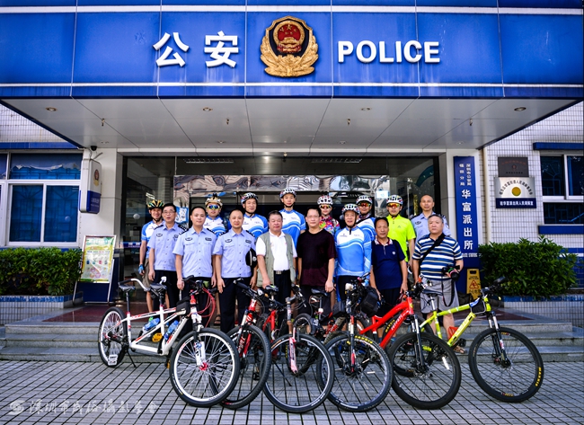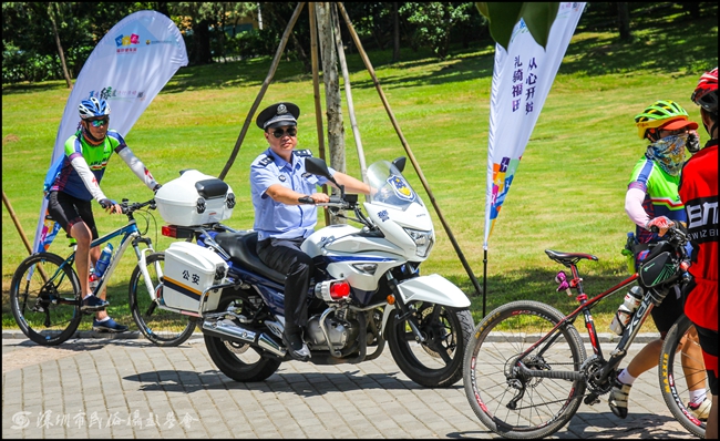为了使这次大型骑行活动顺利完满,华富派出所出动了自己的骑行队,参加了这次旨在安保兼体能训练的活动。党建共建单位深圳市民俗摄影学会也派员出席参加。