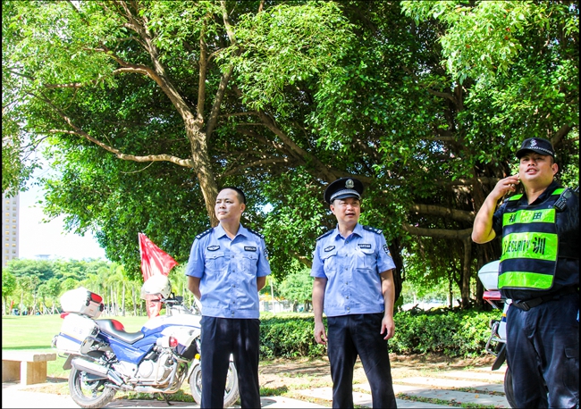 由于天气晴朗,骄阳似火,公园尽管绿树成荫,也难抵挡阵阵袭来的股股热浪。队员们顶着烈日、汗流浃背,但一个个没有任何怨言。直到整个活动正式启动,车队出发。之后,他们随同福田车队绕骑福田辖区绿道一圈,按程序安排返回派出所,完成了护航阶段任务。