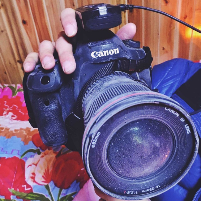 谁说女子不如男?穿着厚重的衣服,再加上15斤的装备,这就是拍风光的代价吧。