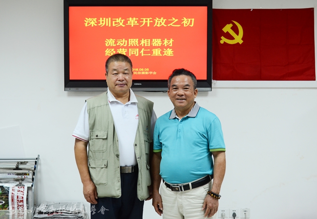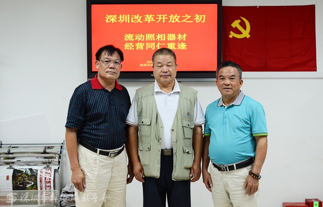 2016年9月5日下午,学会会员潘秉修,李才勇到深圳市民俗摄影学会办公室相聚。会长刘对现与两位相谈甚欢,忆起深圳初期拍摄的历史情境。