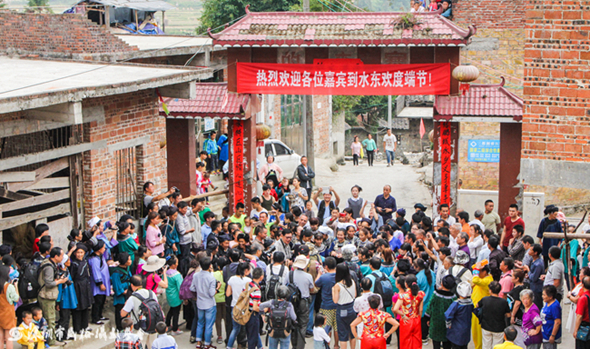 今年,三都第二批端节由9月26日开始,主要为周覃镇水东片区,采风团前往周覃镇水东村与当地水族村民共度端节。村村寨寨扎彩门迎客,敬拦门酒,到处是一派鼓声阵阵,笑声朗朗,酒歌悠扬的热闹景象。当地端节(春节)是水族人民辞旧迎新、祭祀祖先、庆贺丰收和预祝新的一年幸福美满的传统节日。过端的除夕之夜,男女老少伴随着铜鼓声,通宵达旦守夜,沉浸在烟花阵阵冲天,铜鼓声声震地的欢乐气氛之中,采风团成员个个热情高涨,拍摄端坡赛马、水歌对唱等丰富多彩的民族文化活动,体验了三都优秀、古老、神秘的水族习俗,也深深感受到水族人民的热情好客。