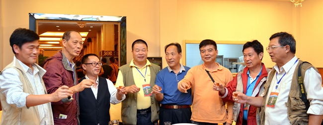 在水族(三都)乡亲会执行秘书长、原三都驻深办主任刘俊柏与水族(三都)乡亲会驻会副秘书长韦继堂的接待下与我团一行共同享用晚餐。餐桌上,酒是最有感情的水,其他任何饮品无法比拟。我们品尝着三都当地特有的美酒——九阡酒。小小酒杯里的酒,一饮而尽。在充满民俗气息氛围的贵州三都中畅谈人生理想!