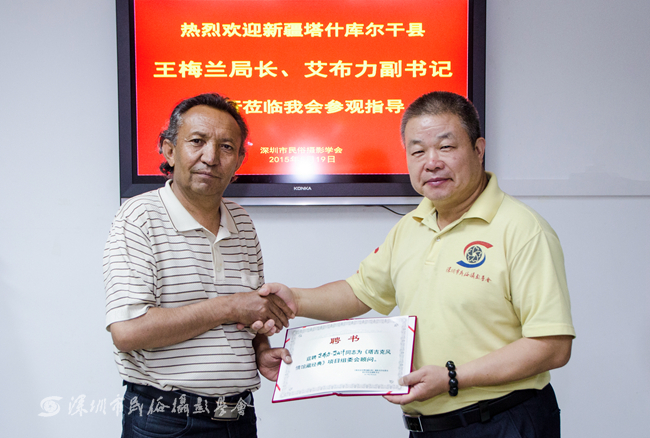 艾布力·艾山汗生前,曾多次作为政府代表团队成员前来深圳工作,或参加深圳(国际)文博会,或出席深塔政府项目的交流,或参加有关塔吉克民族的文化研讨。每到深圳,艾布力都十分关心深圳的民俗文化交流工作,而深圳市民俗摄影学会作为《中国塔吉克风情馆藏经典》项目的承办单位,每次都有幸作为“对口接待”或民俗交流的东道主角色全程参与,艾布力书记于是对深圳市民俗学会更是“高看一眼,厚爱三分”,深圳一批摄影家有幸参与项目创作,更是深得艾布力书记直接指导和教导,当然,负责项目组织、推进过程的民俗摄影学会会长刘对现、副会长马庆芳,负责项目艺术指导的艺术摄影学会会长苏伟明等大咖更是成为艾布力书记的知心朋友。