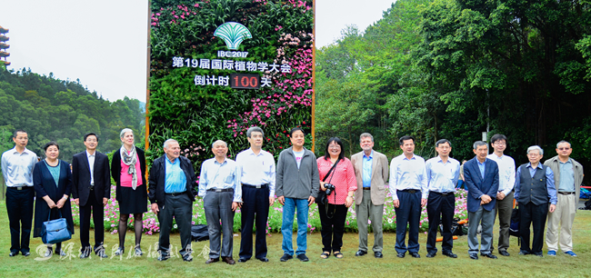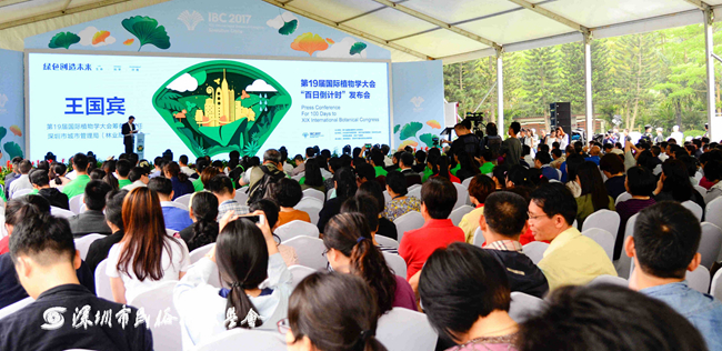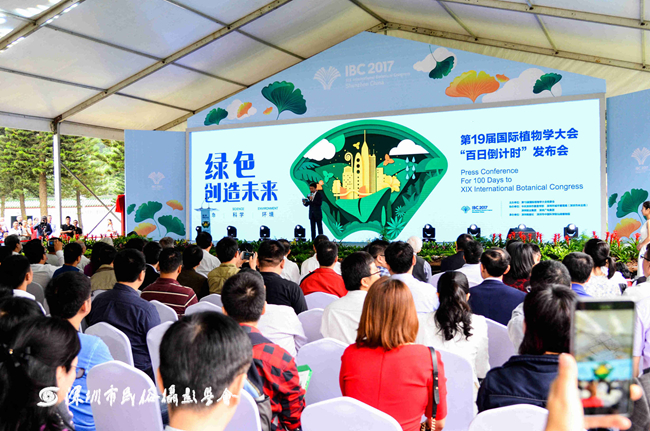 2017年4月15日上午 ,绿色创造未来——第19届国际植物学大会“百日倒计时”发布会在仙湖植物园天上人间大草坪举行,大会组委会主席、中国植物学会理事长武维华,大会组委会名誉主席、中国科学院院士洪德元,大会组委会副主席、深圳市委常委刘庆生,大会组委会秘书长、中国植物学会副理事长葛颂,大会筹备办主任、深圳市城管局(林业局)局长王国宾等嘉宾出席发布会。