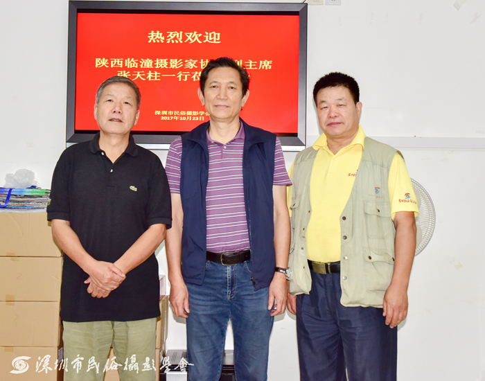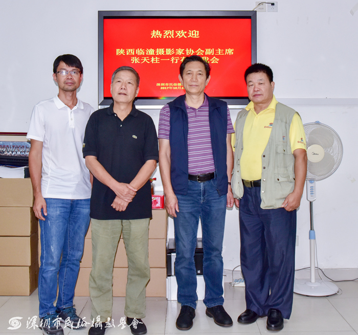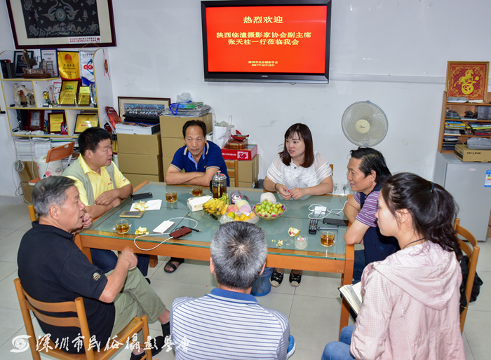 2017年10月23日下午2:00,陕西临潼摄影家协会副主席张天柱、原香港《中国旅游》杂志社编辑部副主任黄焱红一行莅临我会,深圳市民俗摄影学会会长刘对现、会员贾怀亮,刘培忠,朱勇信亲自迎接张天柱一行来深访问,双方进行了亲切友好座谈。