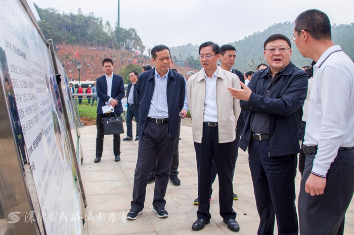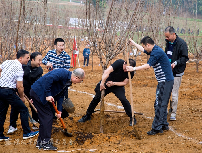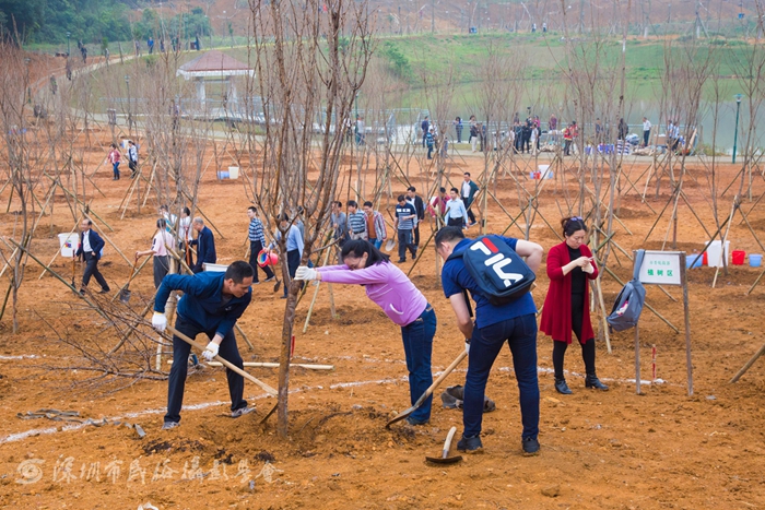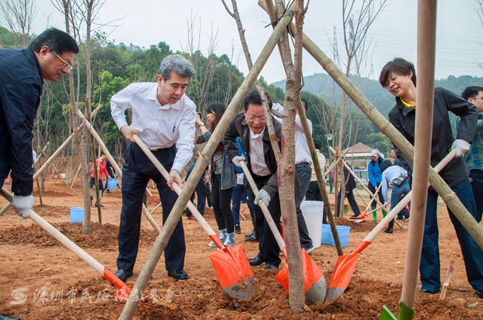 深圳市委书记王伟中、市委副书记李华楠,深圳市委常务副市长刘庆生等市领导与市直机关单位干部职工以及志愿者们在指定植树点进行植树。 大家拿起工具,三五一组地忙碌起来,有的挥动铁锹、有的扶苗踏土。在辛勤劳动中,带着美好的期望,祝愿深圳早日达成创建“国家森林城市”与打造“世界著名花城”的工作目标。
