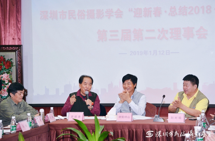 上午10点,苏顺清副会长宣布会议开始。由深圳市民俗摄影学会会长欧阳祥山作2018年工作总结及2019年工作计划。