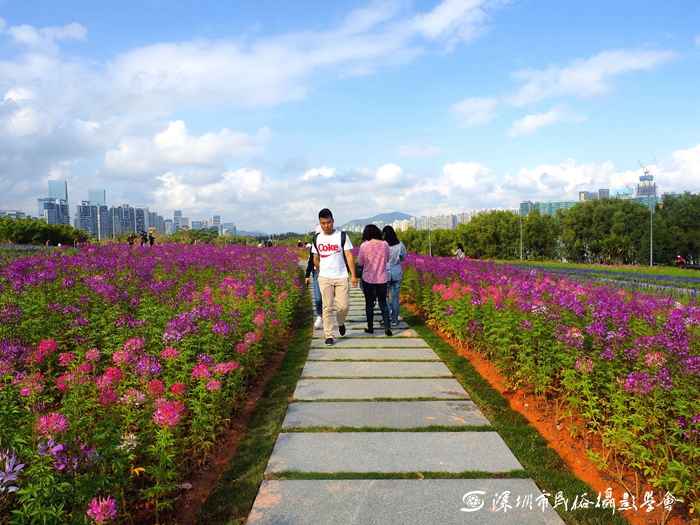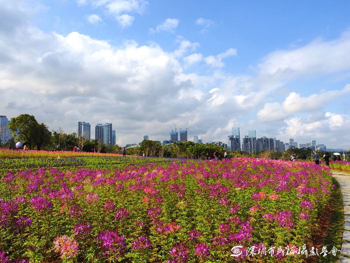 新春佳节尚未过完,北国正雨雪飘飞,而与香港隔海相望的深圳湾公园却温暖如春,抬头蓝天白云,低头百花盛开,深圳湾流花山大型花海正完美演绎“面朝大海,春暖花开”的景象。沿海观光道花坛中大面积种植的矮化大红花、婚庆广场的立体绿化、以醉蝶花为主题花卉的流花山大型花海,成为市民和游客镜头中最多的景色。