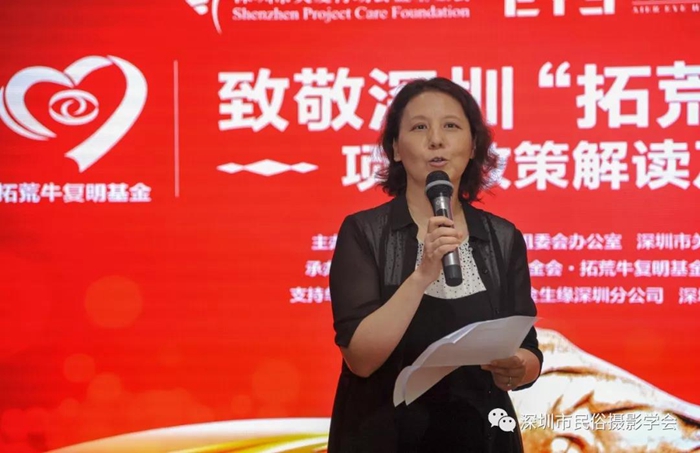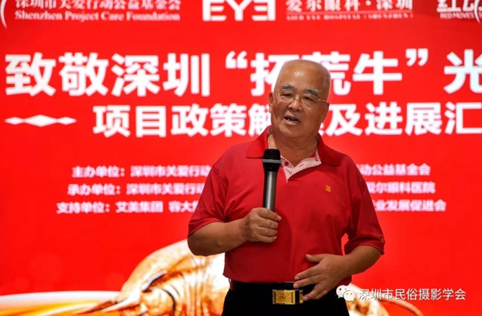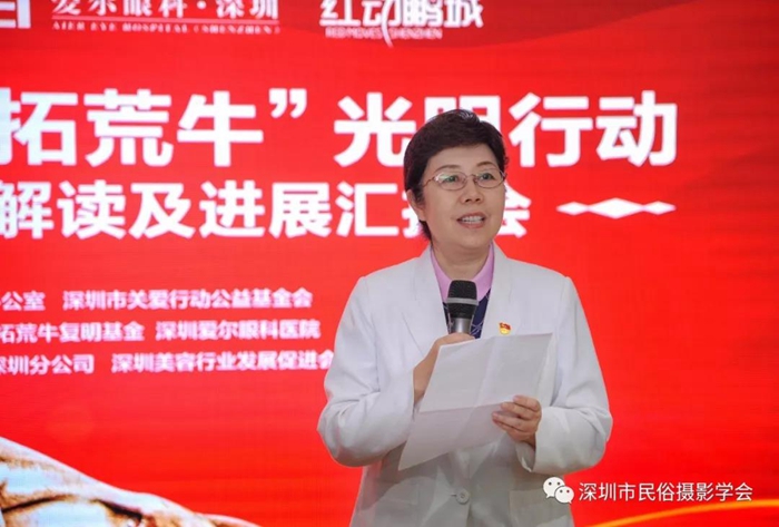 首先由爱尔眼科医院副院长司马晶教授为到场人员详细讲解《复明基金会》的来由和基金会受益对象,重点介绍几位基金会发起人,讲解基金会基金的使用情况。她表示深圳爱尔眼科医院是一家专业眼科医疗机构,自开业伊始便秉承“使所有人,无论贫穷富裕都享有眼健康的权利”的宗旨,致力于防盲致盲公益事业。今后,爱尔眼科必将竭尽全力,继续用专业、责任、爱心回报社会,全心全意造福包括拓荒牛在内的眼疾患者,帮助更多有需要的人重见光明。