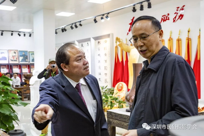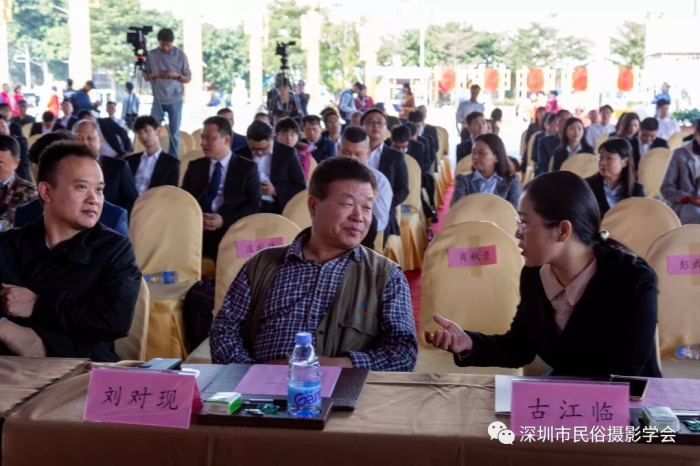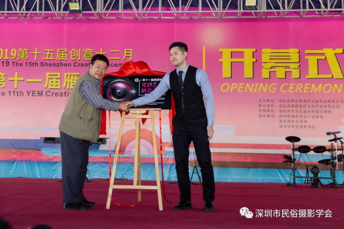 民俗摄影学会秘书长刘对现及惠宝隆酒店设备用品有限公司总裁卢键瀚一起为第十一届雁盟杯摄影大赛启动揭幕