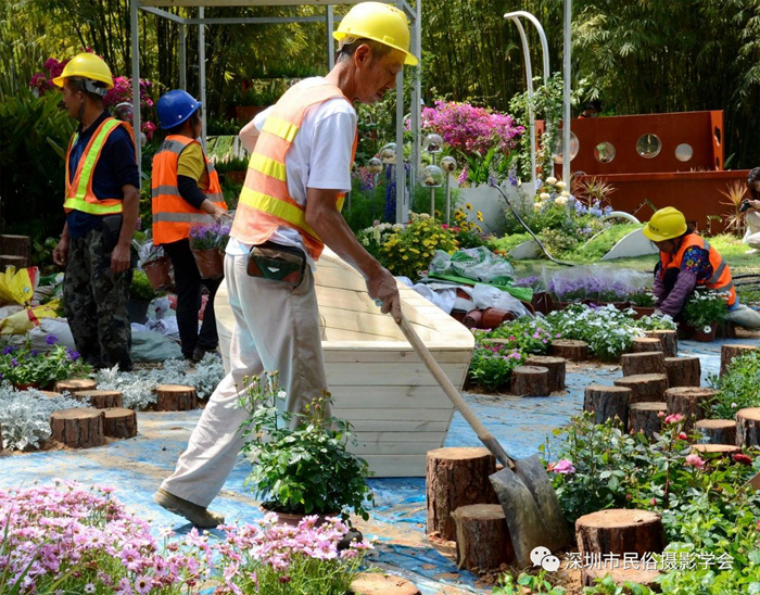 为了保证花展如期顺利举行,连日来,工人师傅们正在加班加点地施工忙碌。深圳市民俗摄影学会组织工作人员进入作业现场跟踪拍摄布展进程。大家从不同角度记录了工人师傅们忙碌的身影,现整理发表出来,感谢他们为花展辛勤的付出。他们挥汗如雨,紧张工作,向这些辛勤劳作的工人师傅们致敬!