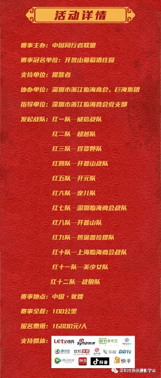 本次活动,特别鸣谢开普山葡萄酒庄园对赛事的冠名及红酒支持;感谢中国第一户外品牌探路者及首届戈友杨云飞先生的装备支持;感谢巨海学院的课程支持。新的征程即将吹响集结号,敦煌的大漠戈壁有一条新的勇士之路在呼唤!这条路依然并不平坦,也必将充满挑战。但正是这样,才会更值得去用脚步去丈量,这条路上充满未知的宝藏。