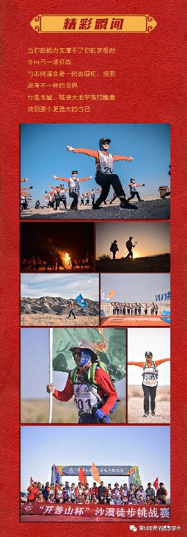 “ 开普山杯 "沙漠徒步赛已经不仅仅是一个赛事,更是一个IP,一个企业家精英人群的圈层交流平台,一个政府、商会组织与企业搭建的高端人脉合作平台。这一次,我们再次联合国内杰出企业家、创业者、创业团队,再次营造精英企业家的高效能社交能量场、戈友之间交流互动的共生平台。人无精神则不立,国无精神则不强。在建党100周年之际,我们以100人徒步100公里的形式,感受中国共产党100年来走过的坎坷与光辉的历程,弘扬及传承以爱党、爱国为核心的民族精神。