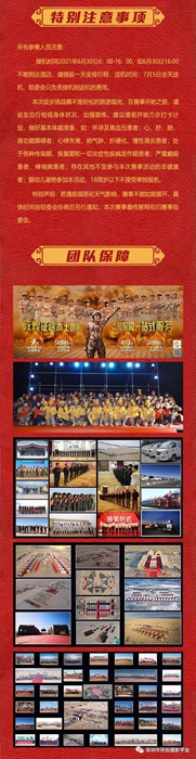 本赛事倡导“放下、坚持、突破、感恩”的理念。赛事组委会将在延续首届赛事的基础上,保持初心与火种,更加注重大家的美好体验通过浸入式的身心体验和团队协作,帮助所有参赛者在内心深处寻找让生命得以蜕变重生的巨大能量,从而以更积极的心态,更强大的生命动力,更健康的生活方式去拥抱生命中更高的挑战,更大的梦想。 “ 开普山杯 "沙漠徒步赛已经不仅仅是一个赛事,更是一个IP,一个企业家精英人群的圈层交流平台,一个政府、商会组织与企业搭建的高端人脉合作平台。这一次,我们再次联合国内杰出企业家、创业者、创业团队,再次营造精英企业家的高效能社交能量场、戈友之间交流互动的共生平台。人无精神则不立,国无精神则不强。在建党100周年之际,我们以100人徒步100公里的形式,感受中国共产党100年来走过的坎坷与光辉的历程,弘扬及传承以爱党、爱国为核心的民族精神。 本次活动,特别鸣谢开普山葡萄酒庄园对赛事的冠名及红酒支持;感谢中国第一户外品牌探路者及首届戈友杨云飞先生的装备支持;感谢巨海学院的课程支持。新的征程即将吹响集结号,敦煌的大漠戈壁有一条新的勇士之路在呼唤!这条路依然并不平坦,也必将充满挑战。但正是这样,才会更值得去用脚步去丈量,这条路上充满未知的宝藏。