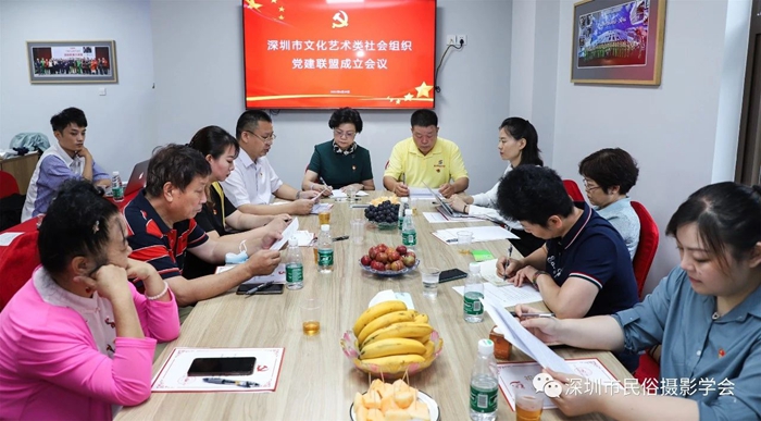 深圳市群众文化学会党支部、深圳市民俗摄影学会党支部、深圳歌唱家协会党支部、深圳市文化艺术培训行业协会党支部、深圳市现代戏剧社联合党支部、深圳市福田区京韵戏剧协会党支部、深圳市福田区梨园艺术团党支部、福田区华强北街道群众文化学会联合党支部、福田区南园街道乐器城党支部、福田区南园街道爱乐文化党支部、深圳市罗湖区紫荆戏曲艺术团党支部、深圳市南山区开心艺术团党支部等12家党支部代表出席了会议。
