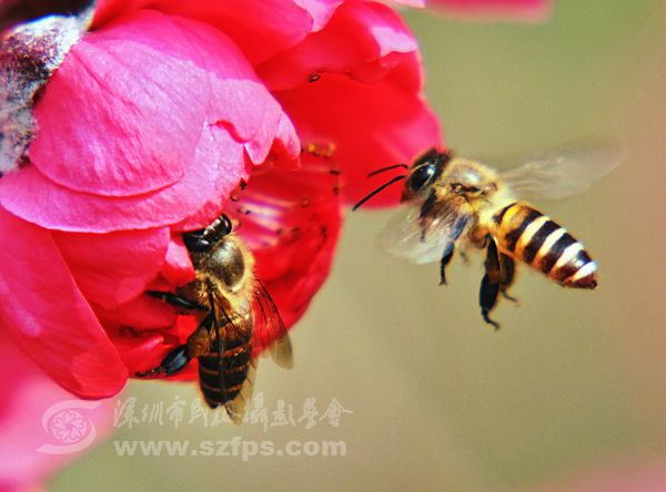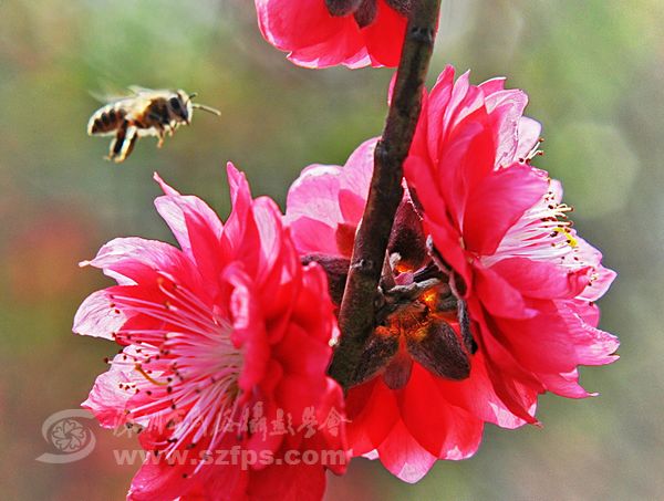 作品名称:桃花香艳蜜蜂忙 作者:马树华