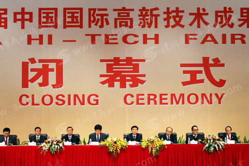 闭幕式由国家发改委高新技术产业司副司长任志武主持。高交会组委会副主任兼秘书长、市委常委、常务副市长许勤宣布了本届高交会优秀组织奖、优秀产品奖及优秀展示奖的获奖单位和企业。商务部等国家有关部委负责人,高交会组委会副主任、市委常委、副市长陈应春,高交会组委会副主任、市长科技顾问刘应力,市政府秘书长李平以及各代表团、各参展单位、投资商、留学生代表等出席了闭幕式。