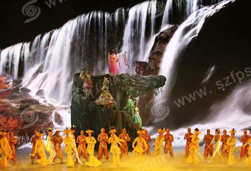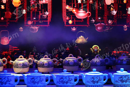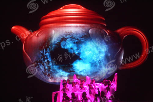 第一幕:空灵的广板,由绿色创意主题和《水》、《火》、《陶》三个单元组成,体现了中国茶文化的绝妙精深。禅茶本一味,蕴藏着生命轮回的真谛;饮茶即修心,包含着升华涅磐的大智慧。