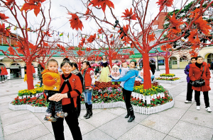 虽然天气寒冷,深圳世界之窗景区内外依然洋溢着喜庆的节日气氛。