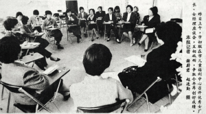 1988年2月27日,市妇联在市儿童福利中心召开优秀女厂长、女经理座谈会。大家围坐一圈,亲切交谈。