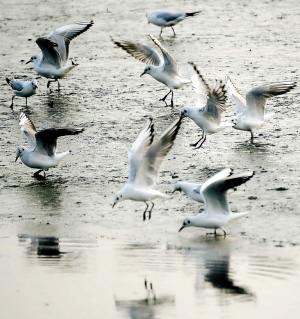 昨天下午深圳湾退潮时,红树林凤塘河口聚集成千上万只觅食的候鸟红嘴鸥。