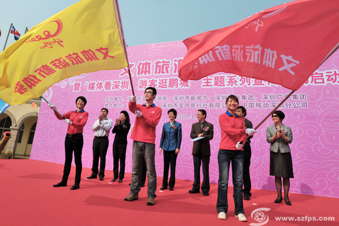 3月23日,由深圳市文体旅游局、深圳市政府新闻办、深圳报业集团、深圳广电集团联合主办的文体旅游线路推广暨“媒体看深圳,游客逛鹏城”主题系列活动的启动仪式在世界之窗隆重举行。深圳市副市长闫小培、深圳市文体旅游局局长陈威、深圳市文体旅游局副局长李小甘、深圳市外宣办副主任李燕玲出席了活动,深圳市副市长闫小培、深圳市文体旅游局副局长李小甘、为首发团授旗,并宣布活动仪式启动,深圳市文体旅游局局长陈威为活动的启动致辞。深圳市文体旅游局、深圳市政府新闻办、深圳报业集团、深圳广电集团负责人以及数十名记者、300多名文体旅游线路首发团游客参加了启动仪式。