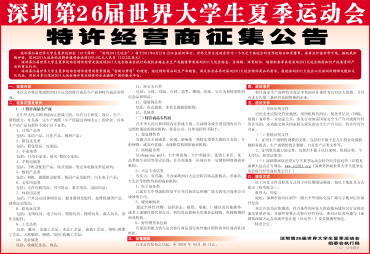 深圳第26届世界大学生夏季运动会特许经营商征集公告