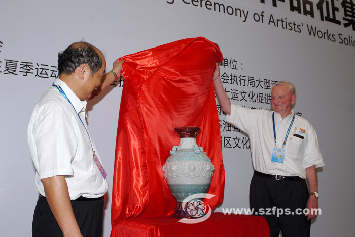 在大芬油画村参加世界大运艺术家作品征集启动仪式