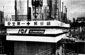 1994年5月16日,68层的地王商业大厦采用大型爬模进行核心墙的浇筑。