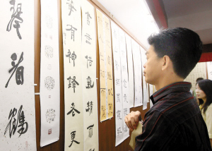 据了解,大赛通过两个月时间在全市范围内广泛征稿,得到许多外来青工书法爱好者的积极参与,从中最终评出毛笔书法(含篆刻)与硬笔书法一等奖各6名、二等奖各12名、三等奖各18名、优秀奖分别为88名和62名。昨天现场展出了这222幅获奖作品,书体有楷、行、草、篆、隶等,作品形式多样,有斗方、扇面、条幅等。展览将展至本月6日结束。