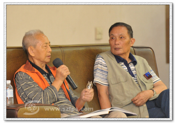 深圳市前革委会副主任李定同志(左一)向何煌友会长致敬