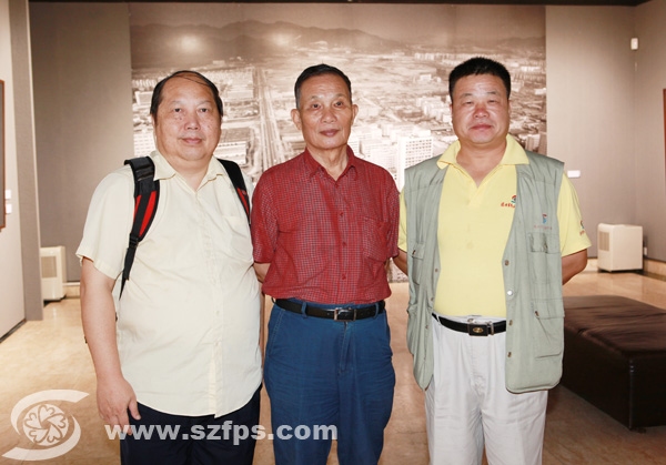 左一:深圳市民俗摄影学会会长刘对现 左二:深圳摄影学会会长何煌友 右一:宝安摄影协会会长王文舵