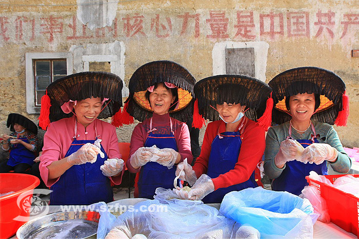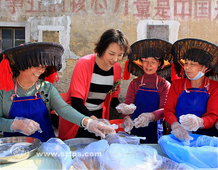 客家大姐现场展示各类型茶果制做