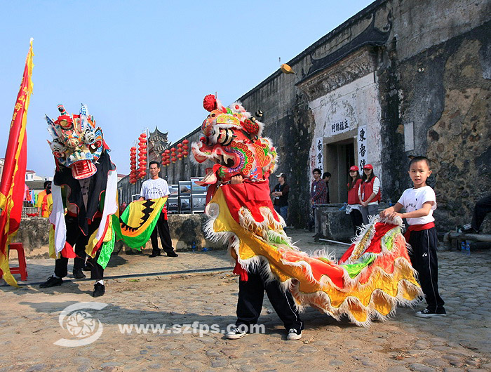 大万世居的小朋友舞麒麟舞得有门有路