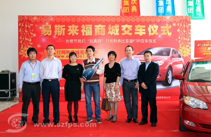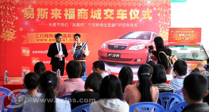 “光棍节11元秒杀比亚迪F3R”活动由易斯来福、比亚迪、工商银行联合发起。活动引起广大网民的关注,在活动当日,全国各地600万人齐聚“秒杀”的网络现场,在11月11日11时11分11秒决定胜负时刻,“秒杀”人气达到巅峰。最后,家住龙岗的傅先生“秒杀”成功。
