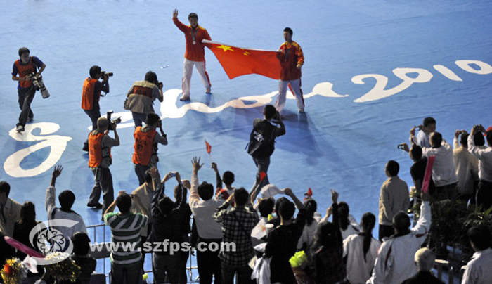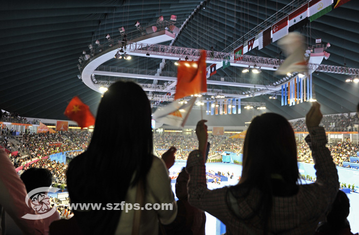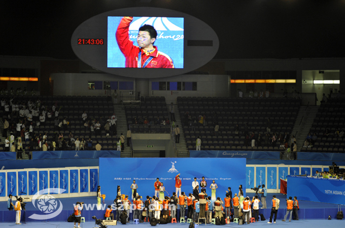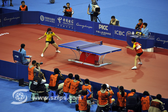 2010年11月20日晚上7点,亚运会乒乓球男子单打决赛、女子单打决赛在广州新体育馆举行,现场观众席座无虚席,拉拉队欢呼声此起彼伏。