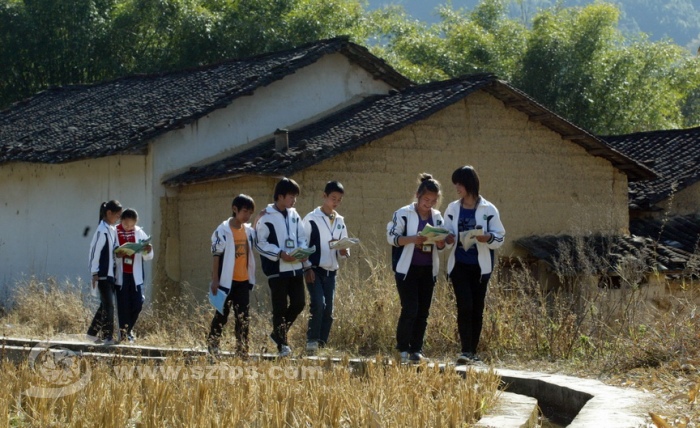 另一间学生宿舍里,几个学生正在讨论着作业。室内两排床中间的走道上,原木钉成的桌子上,整齐的摆放着书本,一个床头挂着一塑料袋干菜,那是三个女生一周的佐餐菜肴,之所以要挂起来,是防止虫子和老鼠与她们争食。宿舍外走廊的防护墙上,一个初二的女生正在翻动着她晾晒的发黑的几片番薯干。她告诉笔者:学校晚上不能煮饭,那是她晚自习的干粮。笔者向她要了一块,放到嘴里,简直像石头一样硬,根本嚼不动。笔者问:这么硬你能咬得动吗?她教笔者道:先放进嘴里含着,慢慢吸吮,等慢慢变软了就可以咬动了。