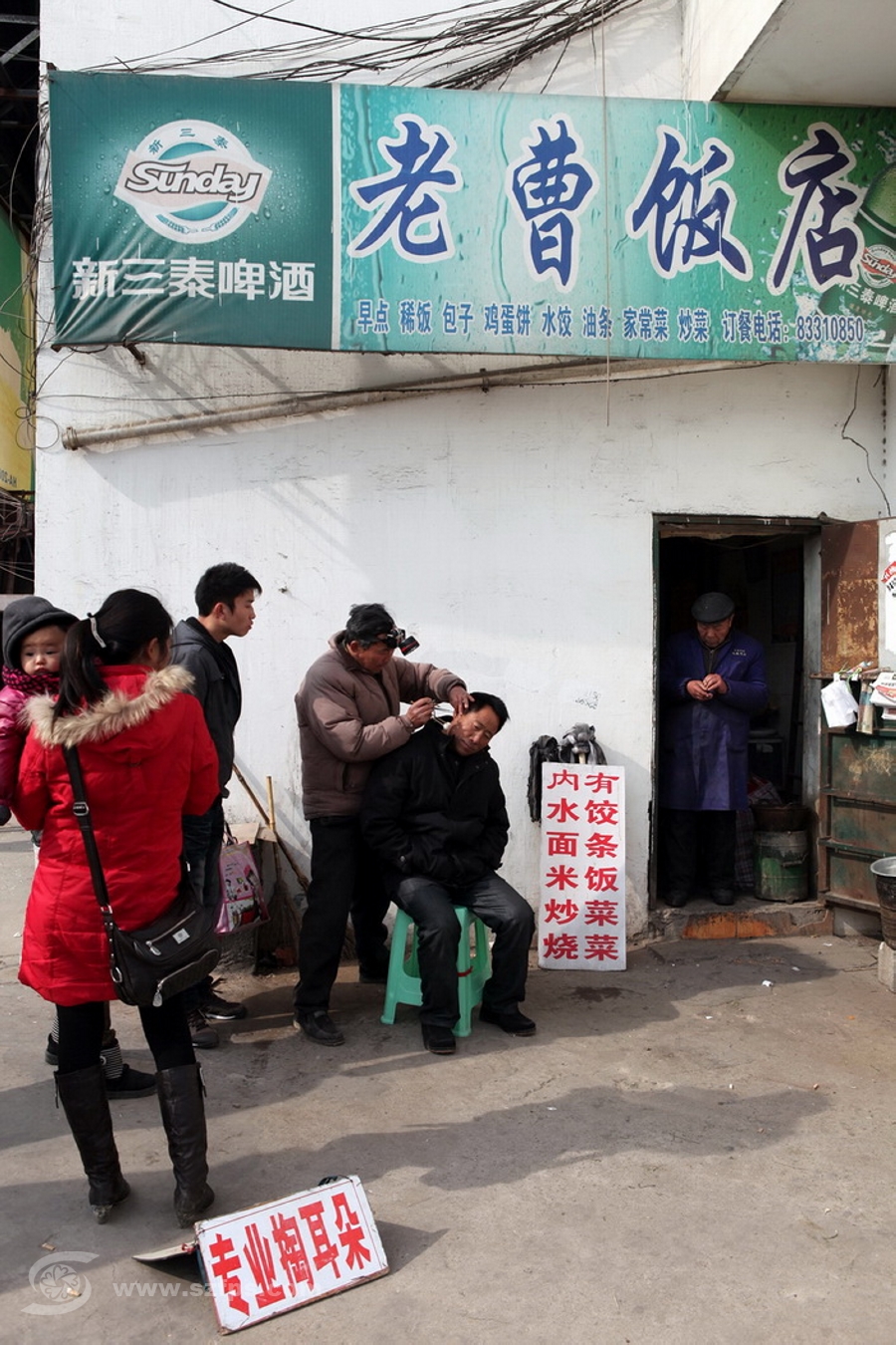 我问掏耳师傅:“你天天都在这里吗?”他说:“一般人半年掏一次耳朵就行了。所以,在一个地方只能呆上十天半个月,生意淡了就走。年前淮安就算转完了,开春去徐州。徐淮盐连几个市的乡下转完也就大半年了。很多地方都是熟客,我一到,他们就会转告,生意还凑合”。