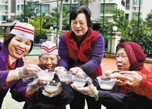 记者昨天在皇岗社区“邻里美食展”上看到,家住皇岗的巧手嫂子,能干姑娘,厨艺了得的大叔、大哥,爷爷奶奶们,拿着锅碗瓢盆齐齐上阵,亮出了自己的拿手绝活儿。有饺子、烧饼,以及地域特色的陕西凉皮、天津麻花,还有宋朝流传下来的汤圆。居民现场边吃边说,咬一口,甜三年,邻里共享一家亲。