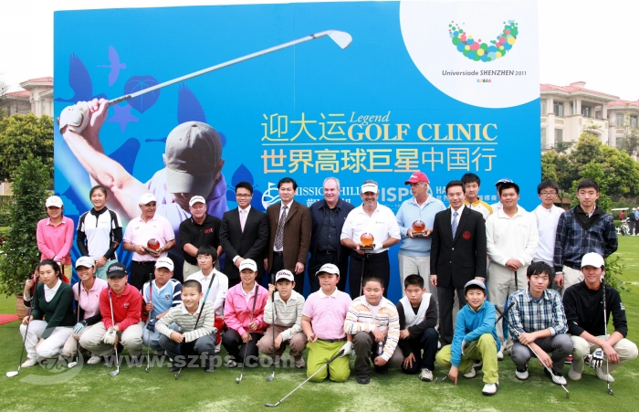 【2011年3月11日,深圳】今日,“迎大运 世界高球巨星中国行”活动在深圳观澜湖高尔夫球会拉开序幕,由世界高坛巨星伊恩•伍斯南、山姆•托兰斯领衔的常青传奇选手为青少年球手奉献了一场精彩的高尔夫教学活动,并以此祝福深圳世界大运会能够成功举办。