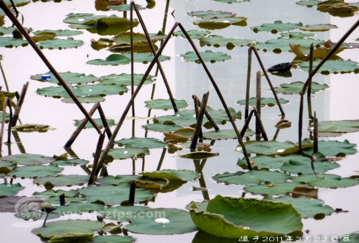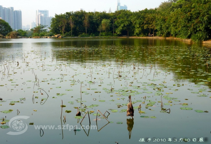 或许是莲花山优良的自然条件,荷叶在枯荣交替中不断扩大着自己的覆盖面积,由最初北端的一隅开始发展,如今已经占据人工湖的半壁江山,或许要不了多久,一年就会有几个月在湖中看不到周边建筑的倒影了。