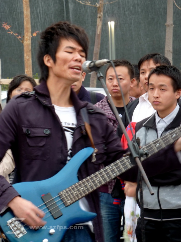 清明节下午到图书馆借书,没想到图书馆放假,准备转到书城看看,无意中看到原上草乐队正在广场演出。于是,我挤进人群拍了这么一组照片。