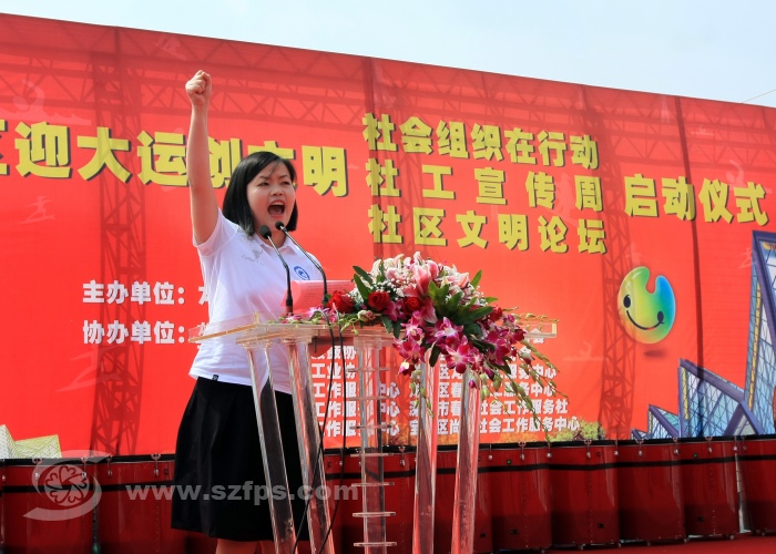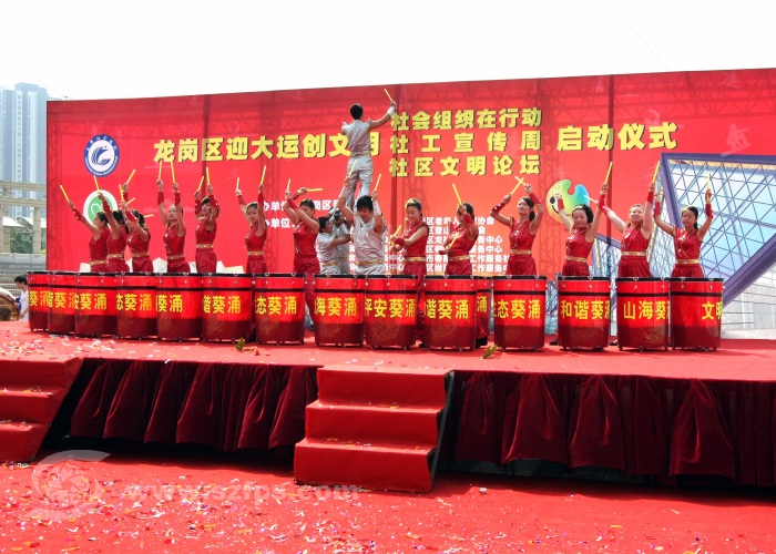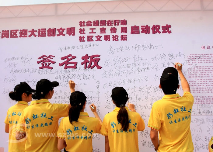 2011年4月15日上午,龙岗区“迎大运,创文明,社会组织在行动、社工宣传周、社区文明论坛”启动仪式在深圳龙城广场隆重举行。