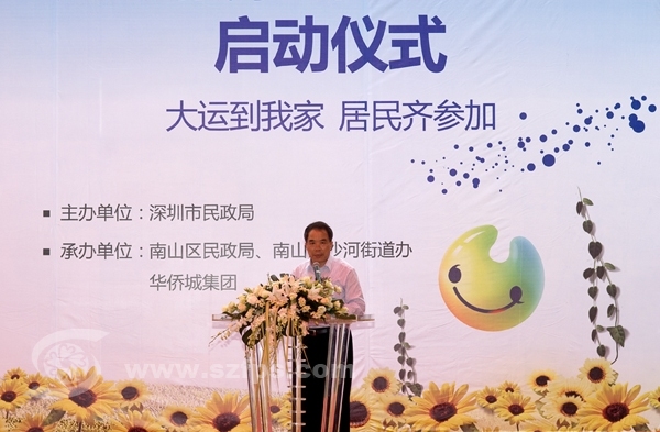 该系列活动由市民政局主办,南山区民政局、沙河街道办事处、华侨城集团承办。整个启动仪式内容包括:演唱文明礼貌歌、向社区居民代表赠送文明礼貌歌光盘、家庭代表宣读市民迎大运倡议书、为社区志愿者授旗、志愿者代表宣誓、团体柔力球、为社区服务中心试点单位授旗等。