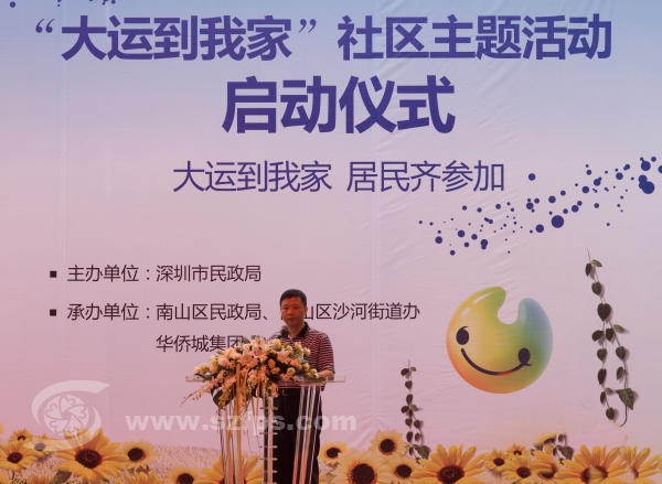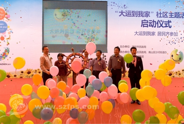 为拉近社区居民与大运距离,全市632个社区全面投入“大运到我家”社区系列活动。2011年5月5日下午,“大运到我家”社区主题活动启动仪式在南山区华侨城生态广场隆重举行。