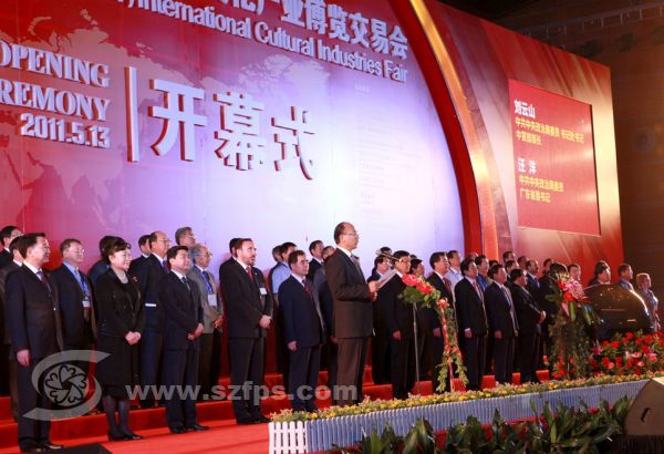 5月13日上午,中宣部部长刘云山、广东省委书记汪洋,在深圳会展中心一同启动第七届“中国(深圳)国际文化产业博览交易会”开幕水晶球。