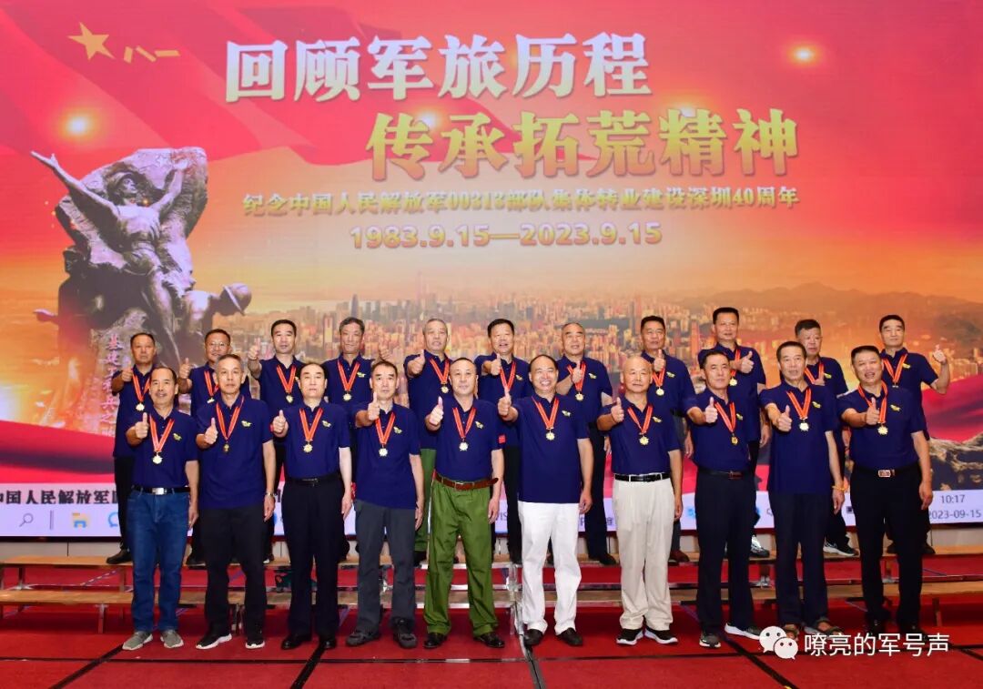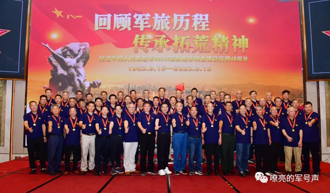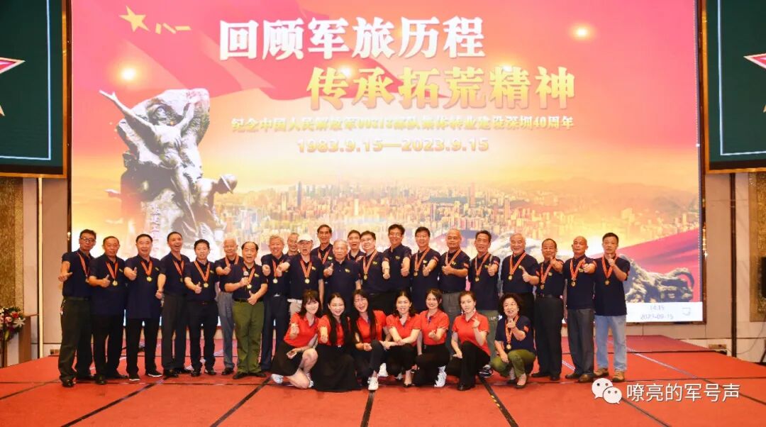 9月15日上午,一首首雄壮欢快的军歌在深圳市宝安北路粤江春宴会大厅回荡,大厅内华灯齐放,灯火辉煌,洋溢着一派节日的喜庆景象。原00313部队近四百名老兵在这里隆重庆祝303团集体转业建设深圳四十周年。
